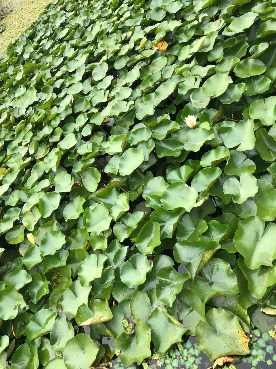 活水順着地勢流經幾個荷塘,最終匯聚到一個稍大的池塘裏,池塘的最中心是一大叢高高的蘆葦,四周環繞着密密的荇菜和幾簇睡蓮。