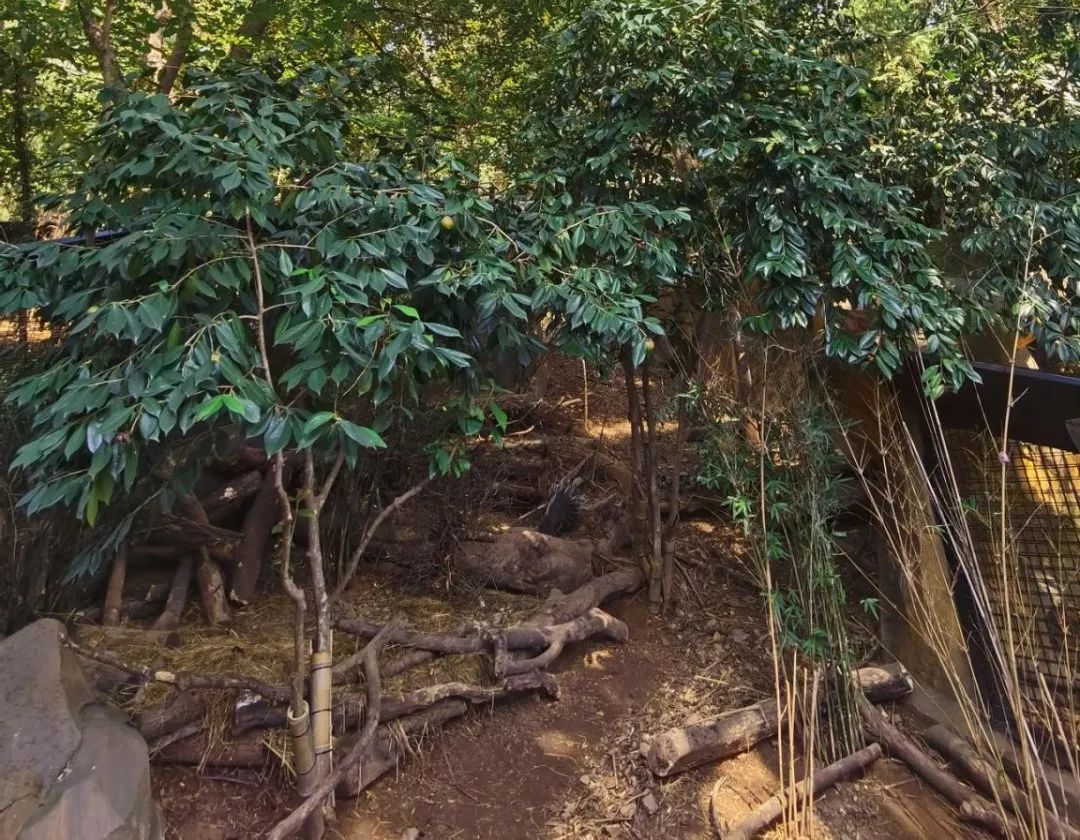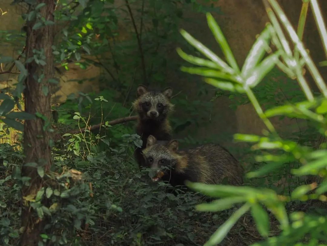 貉展區裏種滿了八角金盤、絡石和山茱萸,樹上爬繞着各種藤蔓,貉媽媽帶着四隻崽子在這裏一共有三處藏身處。
