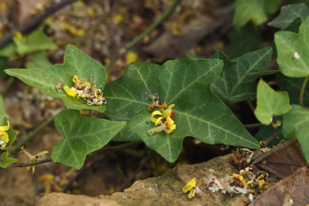 欒樹的花朵被常青藤的大葉子温柔地承接 ©Smile