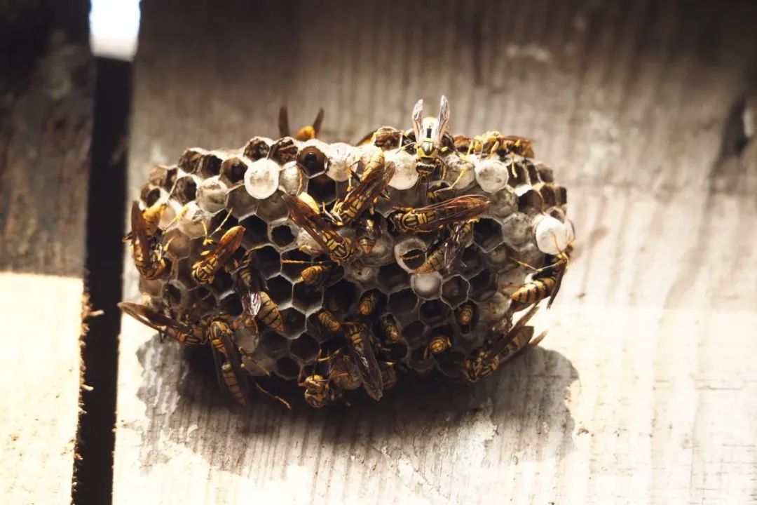 而就在頂上的一個小天井裏,我發現了一個新建的胡蜂巢,我立刻跑到工作區去提醒飼養員。