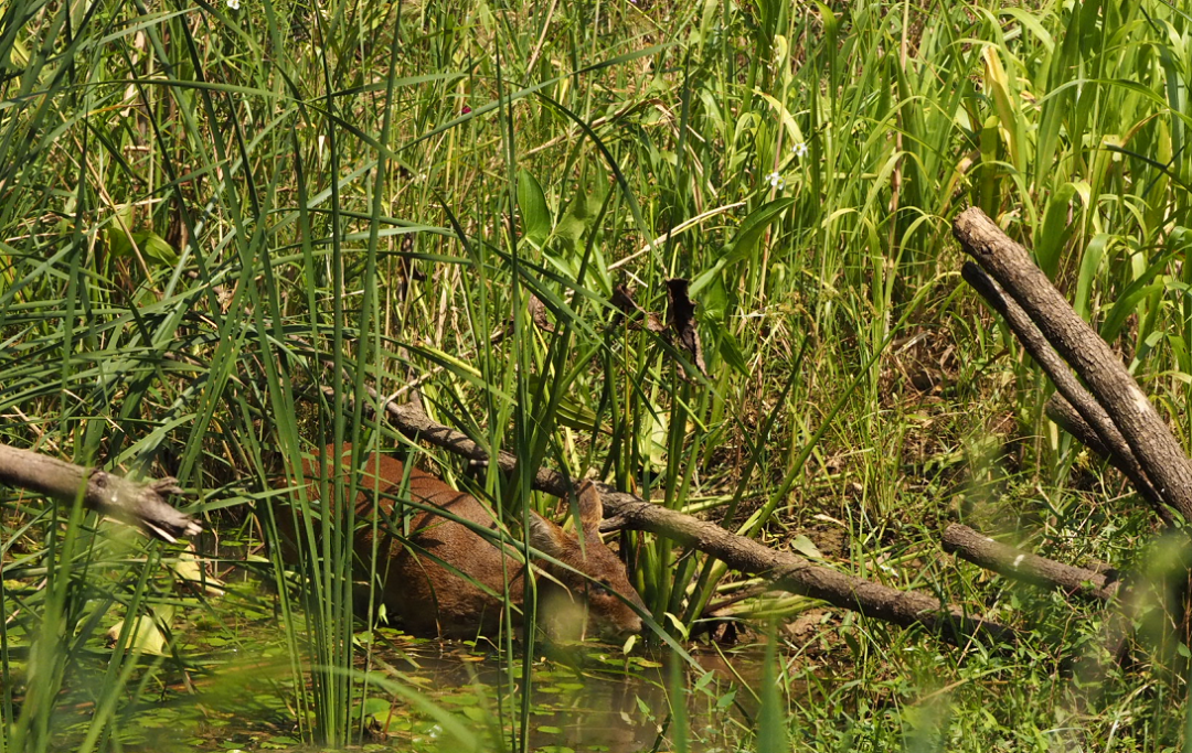 我到得巧,獐子剛好站在水裏嚼着草葉,隔着悶熱的水汽,它佇立在高草中和我對視,像霧一樣沉默。