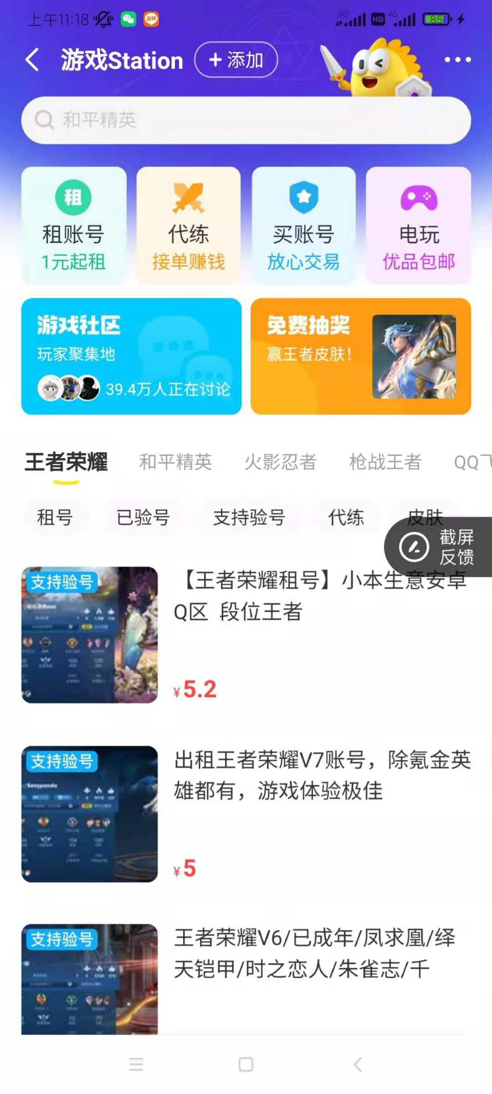 打開淘寶APP搜索“租號”一詞,可以看到大量相關的鏈接,在閒魚上,甚至還有專門的“租號專區”。大量商家宣稱出租王者榮耀、和平精英等遊戲賬號出租,每小時租金介乎4~30元不等,任何遊戲等級的賬號皆能租到。