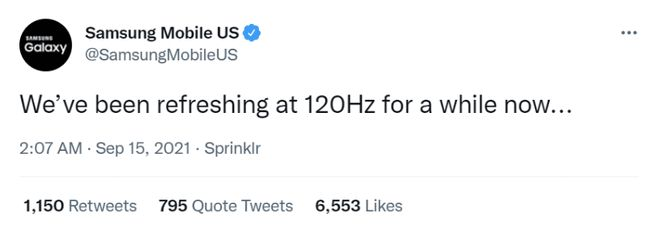 三星表示自己支持120hz刷新率已經有一段時間了。