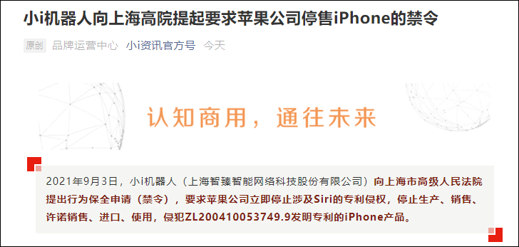 國內小i機器人已提起專利禁令……