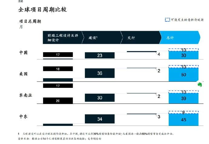 **第三是時間效率高:**項目建設週期產生差異的原因有很多,但主要在於,中國前期可研和政府審批的時間更短,設計和施工的同步程度更高,施工進程更為高效。在中國,設計啓動3個月後便開始施工,而在國外,往往需要9-12個月。