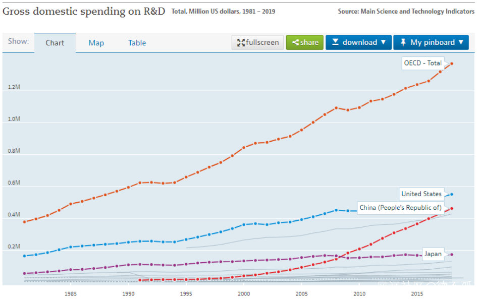 3、我們的技術在原創領域落後於美國等發達國家,但整體研發投入規模並不低。