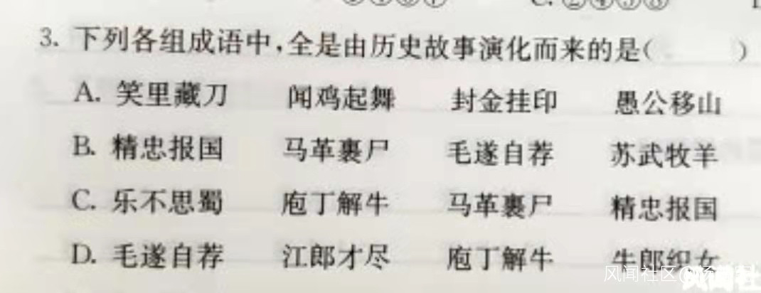 類似例子多得是。一次,上小學的女兒問我:“大事渲染”是什麼詞組?我隱隱約約記得,詞組似乎有“動賓”、“偏正”、“並列”、“主謂”之分,但“大事渲染”屬於那一類,我實在答不出,便如實地承認“不知”。女兒哼了一聲:“我就知道你答不出來”!就這樣,堂堂一個文科教授便被一位小學語文教師搞得是威信全無!其實,有此教訓的家長多了去了。許多事實已經證明還將繼續證明:一位小學語文老師出的題,那是一萬個家長也難答對的。這不,前不久有網友抱怨,越來越看不懂小學生的語文題了:“下列各組成語中,全是由歷史故事演化而來的是那一組?乍一看,這不全是由歷史故事得來的嗎?這題沒法選啊”。