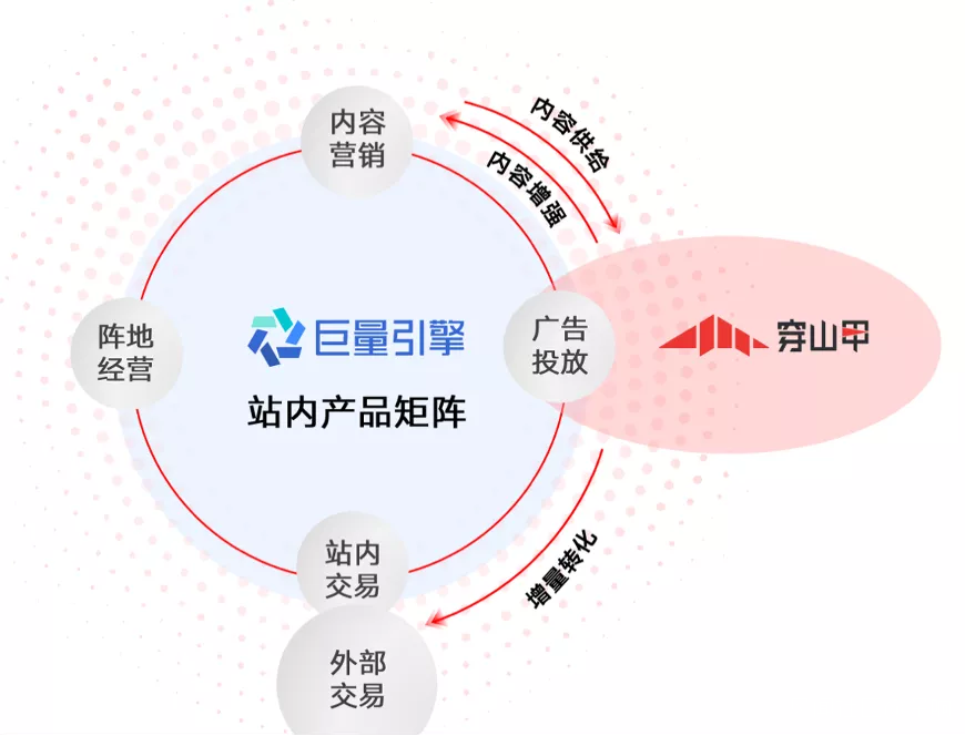 當然,不容忽視的還有穿山甲其實是與巨量引擎打了“組合拳”:巨量引擎在產品矩陣內做內容營銷幫助廣告主獲取增量,穿山甲用站外流量加以補充,兩者雙向互補放大勢能,也因此形成了雙循環驅動,不斷將流量轉為生意增量。