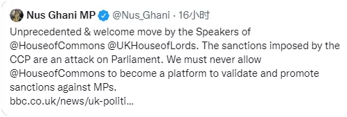 網友都震驚了:英國議會你禮貌嗎?英國解除對中國官員的制裁了嗎?