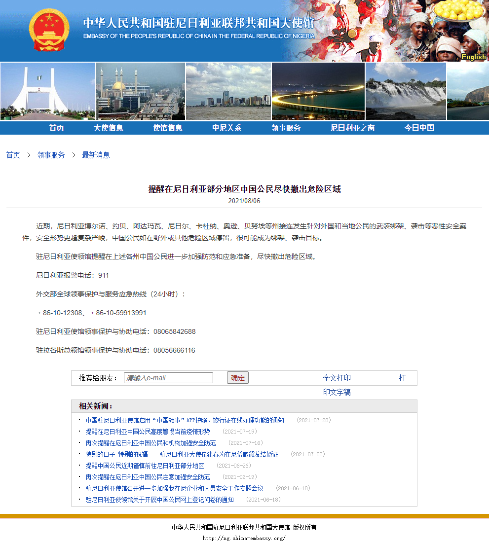 尼日利亞全國兩億人,但警察不足35萬。這35萬中,還有一半是州長、富豪和跨國公司的私人保安,20%從事的是行政工作,只有不到30%的警察在打擊犯罪。去年因為疫情影響,尼日利亞經濟受到嚴重打擊,使得綁架案件變得更加頻繁。今年1月份以來,尼日利亞全國已有超過3000起綁架案件,4個州的上百個校園被關閉,將近1500萬兒童失學。因為頻繁爆發針對中國人的綁架,我國外交部都在上個月發佈提醒,要求我國公民儘快撤出危險區域。