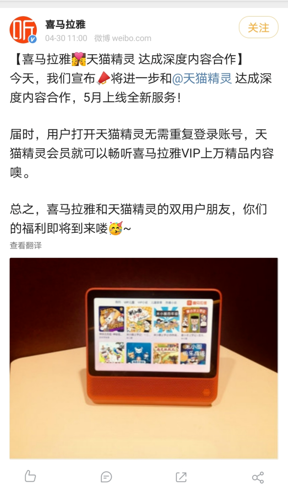 據喜馬拉雅招股書介紹,在2021年第一季度,喜馬拉雅在物聯網及車載設備上的平均月活躍人數已經達到4830萬,並與中國60多家汽車製造商合作。5月17日,喜馬拉雅還和天貓精靈達成合作。而和宣佈造車的小米達成合作,也讓喜馬拉雅未來的終端佈局具備更大的想象空間。