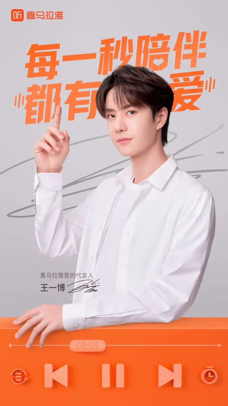 去年6月,喜馬拉雅宣佈王一博正式成為“喜馬拉雅愛的代言人”,王一博個人賬號同日入駐喜馬拉雅,並上線個人全網唯一電台節目《愛就是陪伴》。當天,喜馬拉雅同步推出王一博限定版會員年卡、王一博獨家高清畫冊、王一博超清精美海報等周邊。