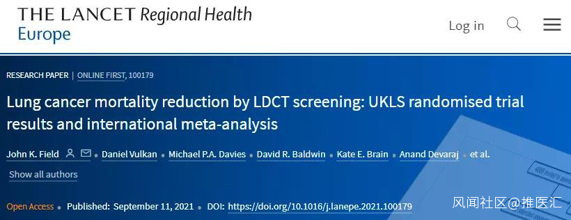 《柳葉刀》子刊:一次篩查,肺癌死亡風險降低約1/3!_風聞