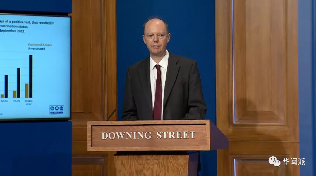 此外,英國首席醫療官克里斯·惠蒂教授也用最新的新冠數據向公眾做了分析和説明。