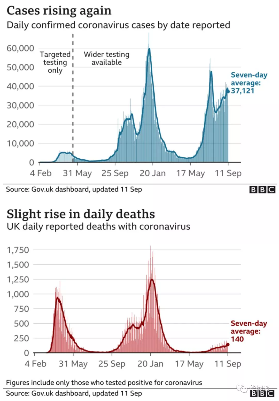 惠蒂教授説,新冠確診病例“在過去幾周企穩”,但死亡人數“正在上升,不過速度很慢”。數據顯示,確診病例、住院人數和死亡人數均高於去年9月。