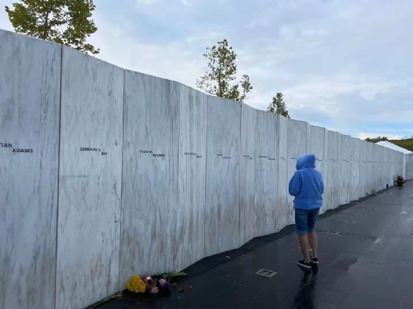 93號航班國家紀念園內“鐫名牆”前。(徐劍梅攝)