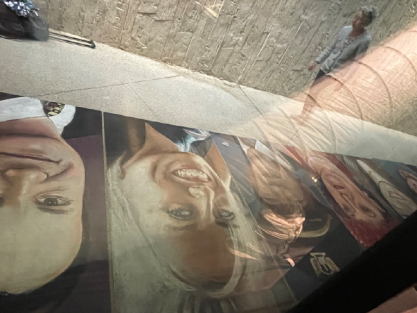 紀念館外,藝術家用彩色粉筆繪製的航班遇難者大幅頭像,這個粉筆畫項目叫做“93號航班的臉龐”(徐劍梅攝)