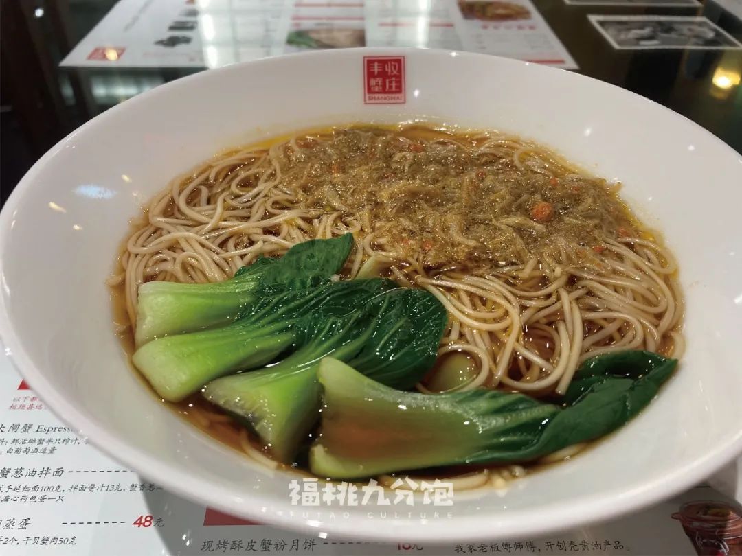 比如這碗蟹粉拌麪,在我看來,就是單純醬油湯的味道、麪條的味道、菜心的味道和幾勺蟹粉的味道。