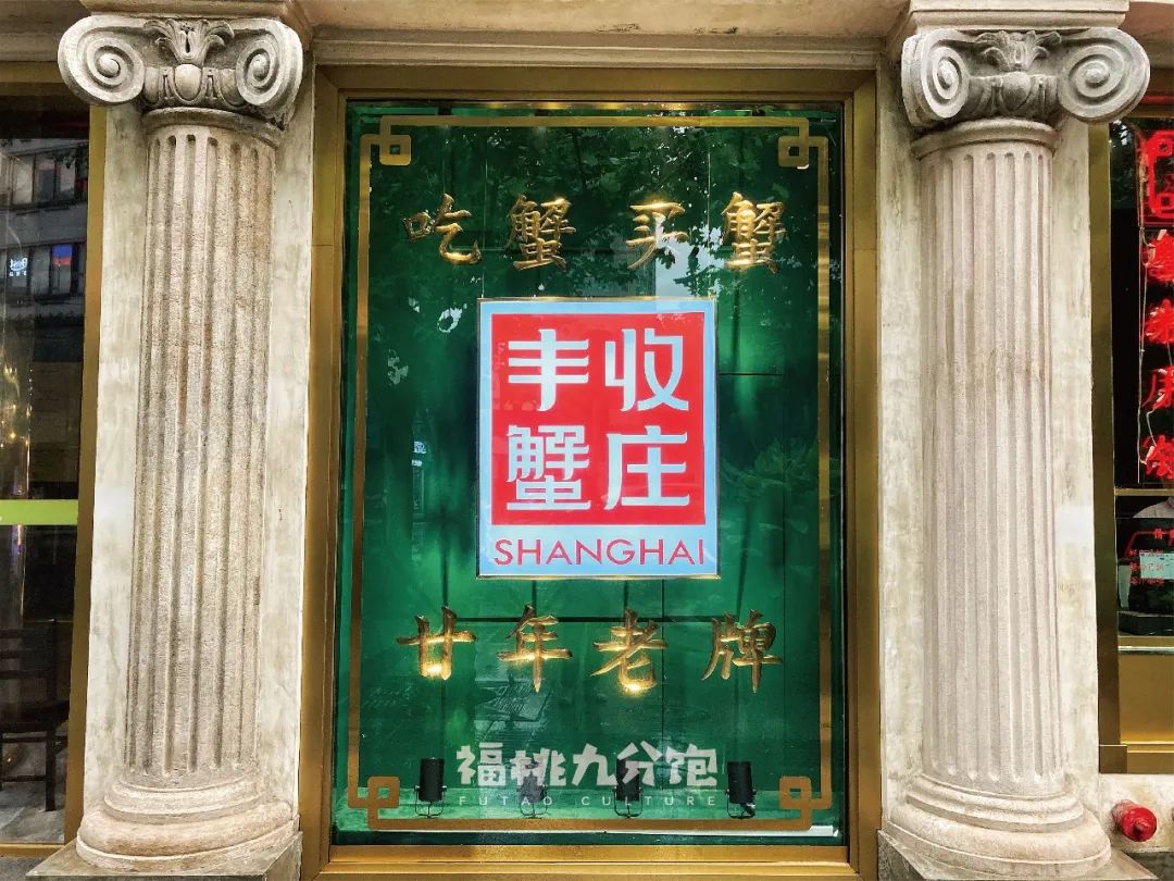 只見牆面櫥窗裏寫十二個大字“吃蟹買蟹,豐收蟹莊,廿年老店”。