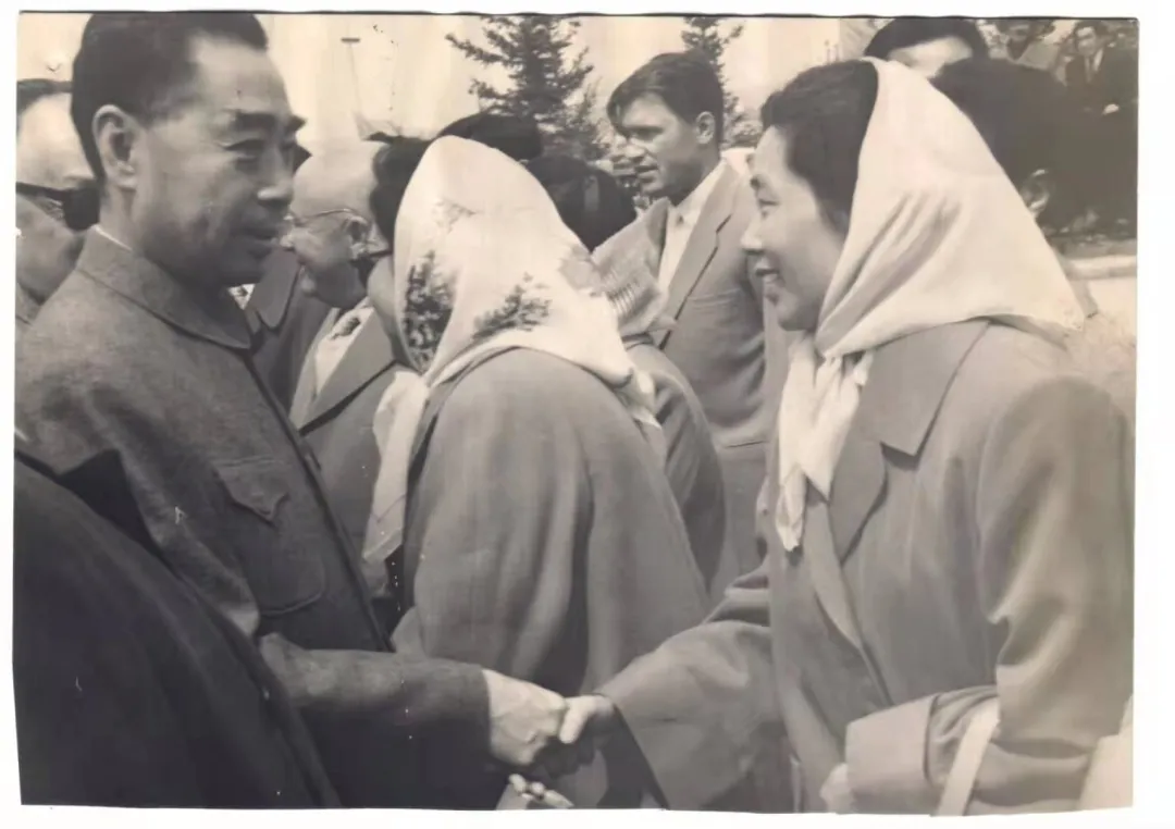 周總理與大使夫人王宏瑜(作者的母親)親切握手