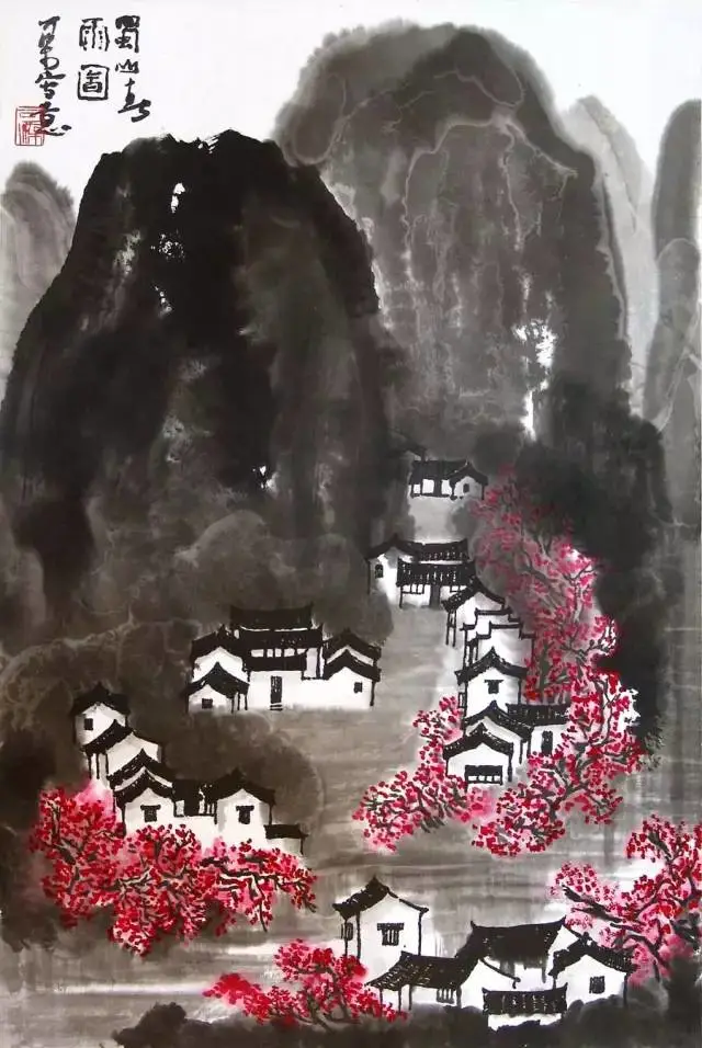 李可染作品《蜀山春雨》