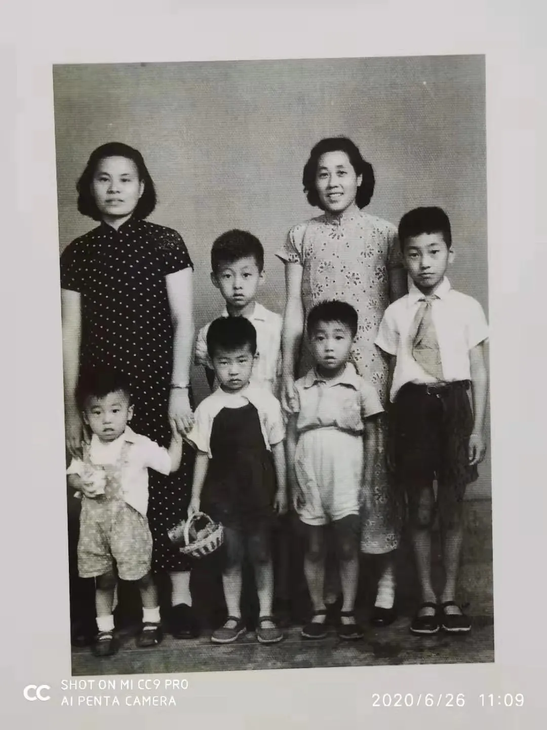 孟家五兄弟與母親(右)、阿姨(左)合影