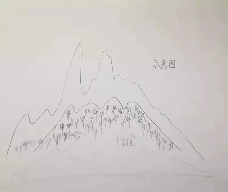 他一邊畫一邊給我講:“這幾個站在亭子裏的人在濛濛細雨中,看對面的高山呢。”