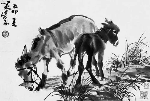 我這人天生膽兒大,遇到什麼場面也不怵頭,跟李大師就聊起來了。我告訴他我家有一張吳作人畫的駱駝,純黑的水墨畫,是兩隻並排站着的駱駝。