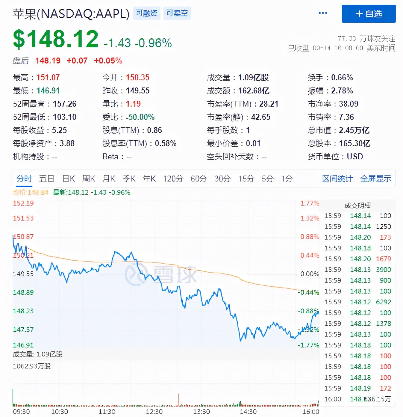 本次iPhone 13又一次被批評新意不足,加之各型號有不同程度的降價,在全球供應鏈緊張、產業鏈環節加價的基礎上,毛利率或許會受到干擾,蘋果股價在發佈會結束時一度下跌1.5%,最終收跌0.96%,距新高又遠了一點。
