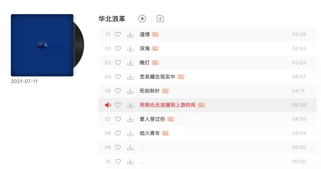 前段時間劉森發行了新專輯《華北浪革》,按照整張專輯的排布,原則上應該是要收錄10首作品,但目前還差兩首沒上線。
