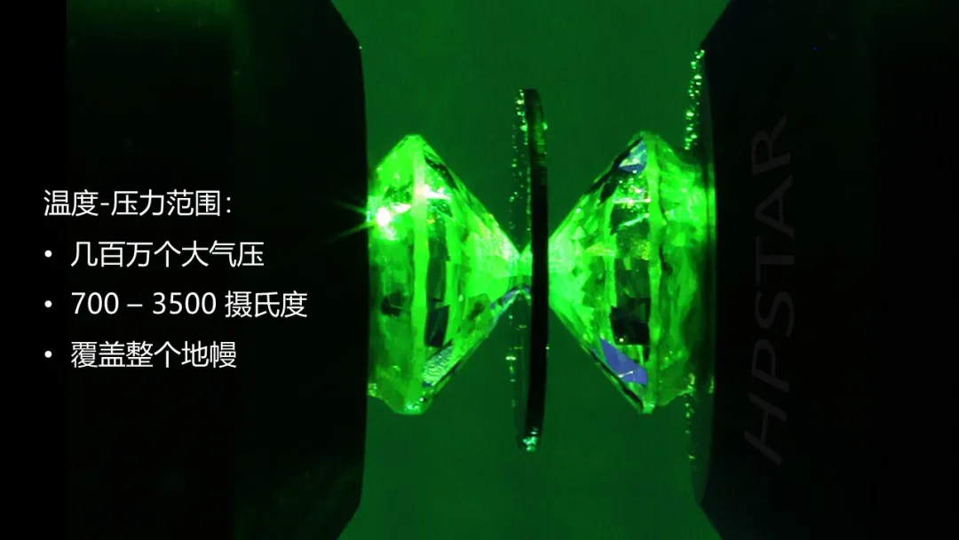 我們在實驗室就換了一種思路,我們打磨了一對金剛石,然後把它打磨成一個錐形,在它的中間放上樣品,然後兩邊用力,這樣就能使這顆細小的樣品上面產生很大的壓力,這樣的樣品可以覆蓋整個地幔的壓力範圍,甚至可以做一些地核的科學工作。