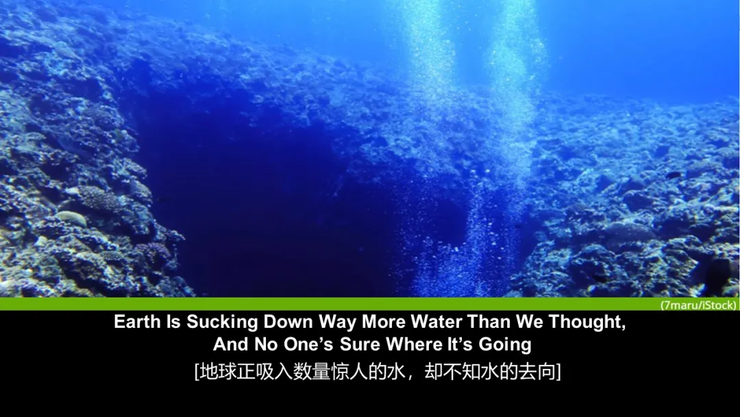 華盛頓大學,他們對馬裏亞納海溝上面的地震波進行了一個分析。他們發現每年有大量的水會吸入到地球的內部。注意他們這邊使用了“吸入”這個動詞,指代的就是,這些水進入到地球的深部,卻不知道水最終的去向是哪裏?