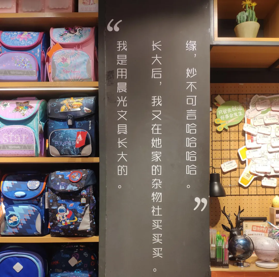 但在晨光之前,真彩等前輩已經在小商店盤亙許久,要突圍必須有奇招。於是,**晨光決定給學校周圍的小商店免費更換招牌,讓他們將晨光產品擺在顯眼位置售賣,而這些門店也在後來逐漸變成晨光專賣店。**這個做法在晨光接下來的發展歷程中,可謂是奠基之舉。