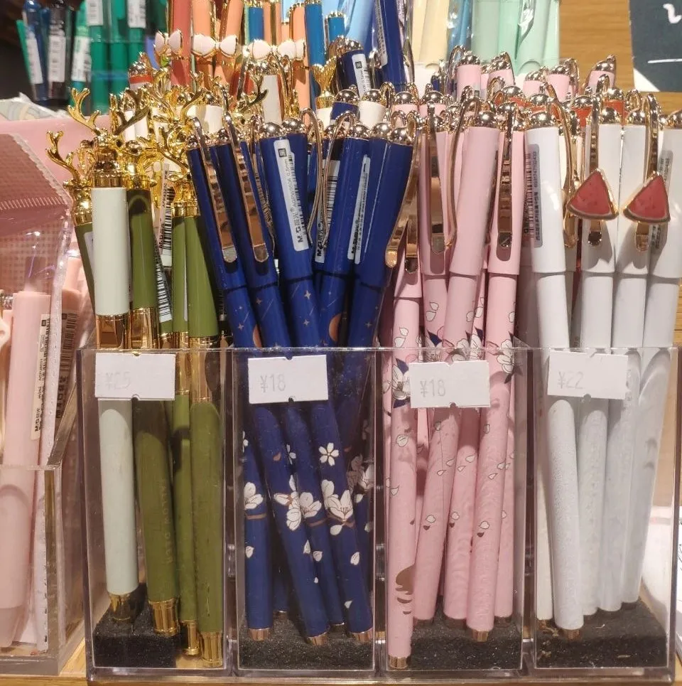 **首先,價格的高昂讓人望而卻步。**以中性筆為例,店內大部分的中性筆價格在5~8元,但也不乏接近20元的筆。一杯奶茶的價格,看似不難負擔,但筆對於其受眾來説,屬於高消耗品,就算一週只是用完一支筆,一個月下來光筆的支出就要接近百元。