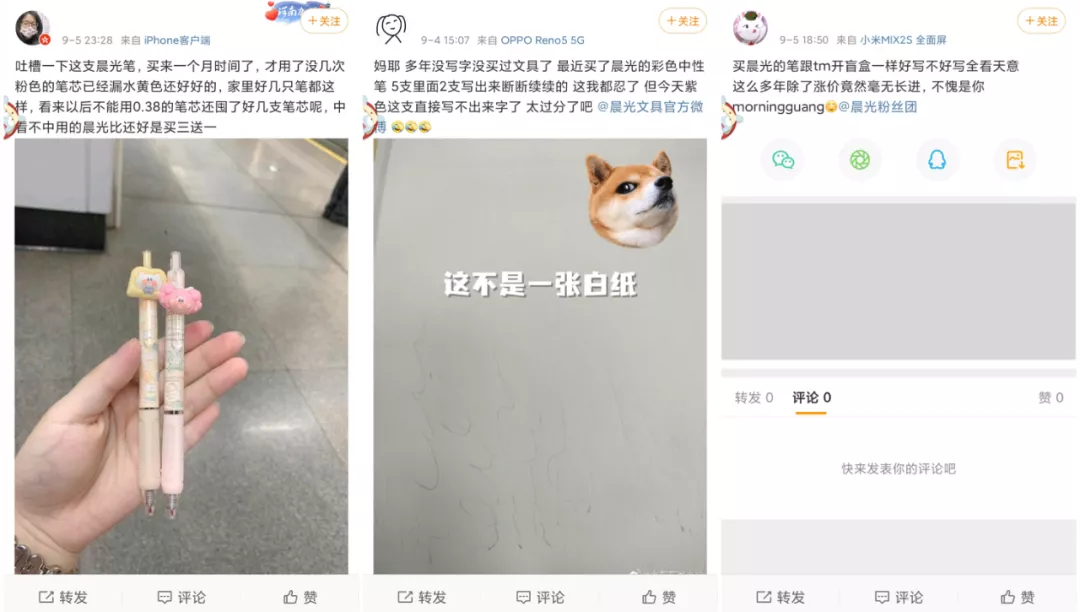 打開微博,搜索“晨光筆”的關鍵詞,能聽取吐槽聲一片。