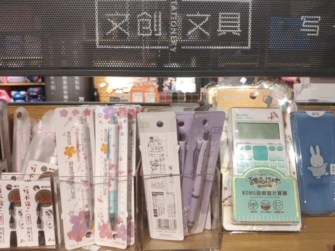 晨光給九木雜物社商品的定位是“文創文具”,看着貨架上花裏胡哨的文具包裝,果醬妹想起了年輕時被“明曉溪”主題文具支配的恐懼,那時候以集齊各種花色的附着青春疼痛字句的筆芯包裝為榮,“米菲兔”系列更是人手必備。