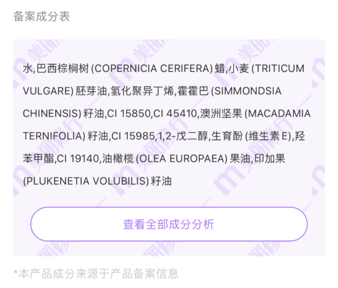以下面這一款美Z秀的號稱純植物色料的成分表為例,植物油脂懸浮着色劑,滿眼的植物油脂加了一個合成角鯊烷『氫化聚異丁烯』,然後加上着色劑CI 15850、Cl45410、Cl15985等。