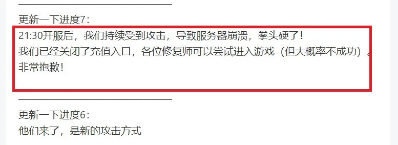 他們一邊拉高自己的防線與黑產鬥爭到底,另外一方面,在論壇中給玩家進行了黑客攻擊的相關文字直播,以表明自己的態度。