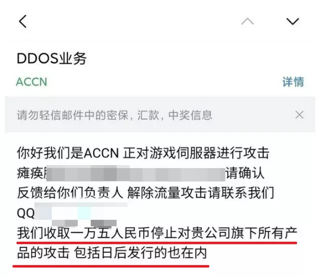 上個月初上線的遊戲《弈劍行》,它也遭受了網絡攻擊。黑客向遊戲團隊勒索1.5萬,不過團隊寧死不從,最終只能含淚關服。