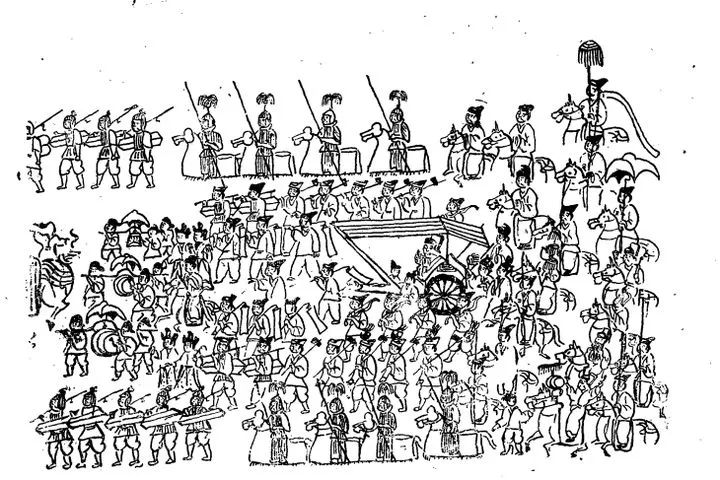 而且根據其中一幅壁畫“出行圖”來看,冬壽外出的車駕邊有足足數百人簇擁着他,一派王者風範。