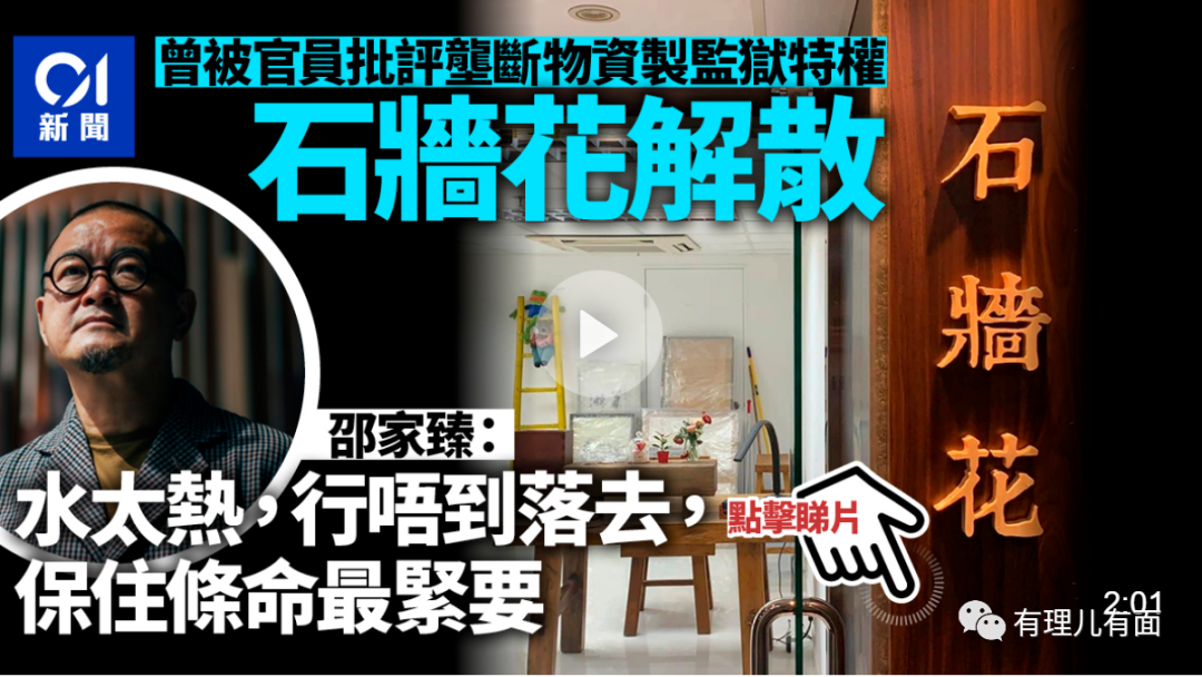 可能是因為自己坐過牢,不想再入獄陪伴“手足”,9月14日邵家臻在社交網站發帖宣佈“石牆花”正式宣佈結束運作,荔枝角辦事處即日起停止服務、不再對外開放,社交媒體亦會停止更新。“石牆花”發文稱“風雨總有限期,保住條命最緊要、最緊要人無事”。