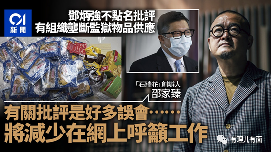 鄧炳強簡短的通報,點出了與監獄內裏應外合的亂港組織“612”基金、以探監為生的邵家臻組織“石牆花”,他們一個組織寫信鼓勵“抗爭”,一個壟斷符合帶入監獄標準的物品獨攬“特權”,這些擾亂監獄環境的外部因素預計將是下一步的工作對象。