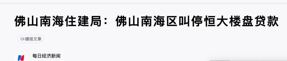 雖然這有點難,因為就在前兩天,佛山已經率先叫停了針對恒大樓盤的貸款,也就是説,如果你買了恒大的樓盤,不好意思,申請不了房貸。