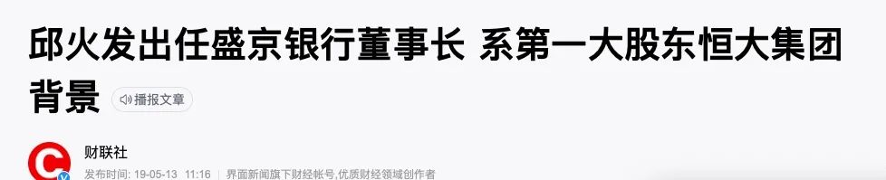 至於為什麼是盛京銀行,因為這家銀行背後的第一大股東,就是恒大。