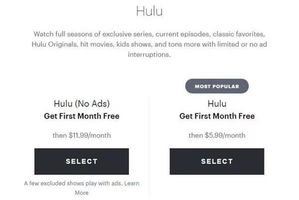 另一派則是以有無廣告來劃分訂閲價格,其中的代表便是Hulu,拋開帶有電視直播的套餐不談,其單純的流媒體服務便是按有無廣告來進行區隔,兩檔會員都能看同樣的內容,而高達6美元(約合40塊人民幣)的差價主要就是體現在沒廣告和能下載兩點上。