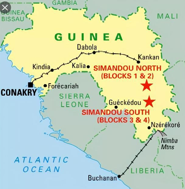 幾內亞鐵礦石儲量和品位均屬世界一流,鐵礦儲量大,品位高,易於開採。西芒杜鐵礦預計儲量在100億噸以上,比較麻煩的是,鐵礦山距離海岸線較遠,需要建設鐵路才能大規模開採運輸。
