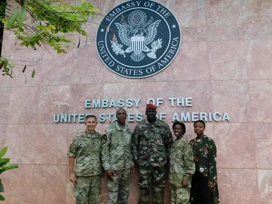9月10日《紐約時報》曝料,自今年7月中旬以來,美國特種部隊一直駐守幾內亞,對該國約100名特種兵進行訓練,而這百人規模的當地特種作戰部隊指揮官,就是9月5日發動政變的敦布亞。而敦布亞本人還在2018年10月,在美國使館前和3名美軍官員高調合影。