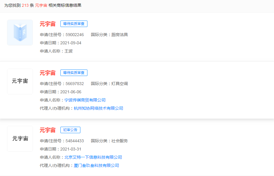 據天眼查APP顯示,元宇宙商標在今年被多家公司申請,還有很多帶有元宇宙名稱的公司成立,希望這些企業中有抱着推動元宇宙發展的想法,而非只是新瓶裝舊酒。
