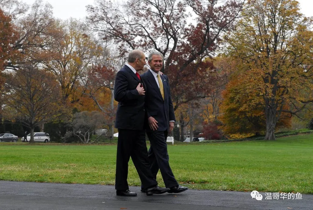 > 2007年6日18-19日,奧爾默特訪美,和小布什在白宮散步
