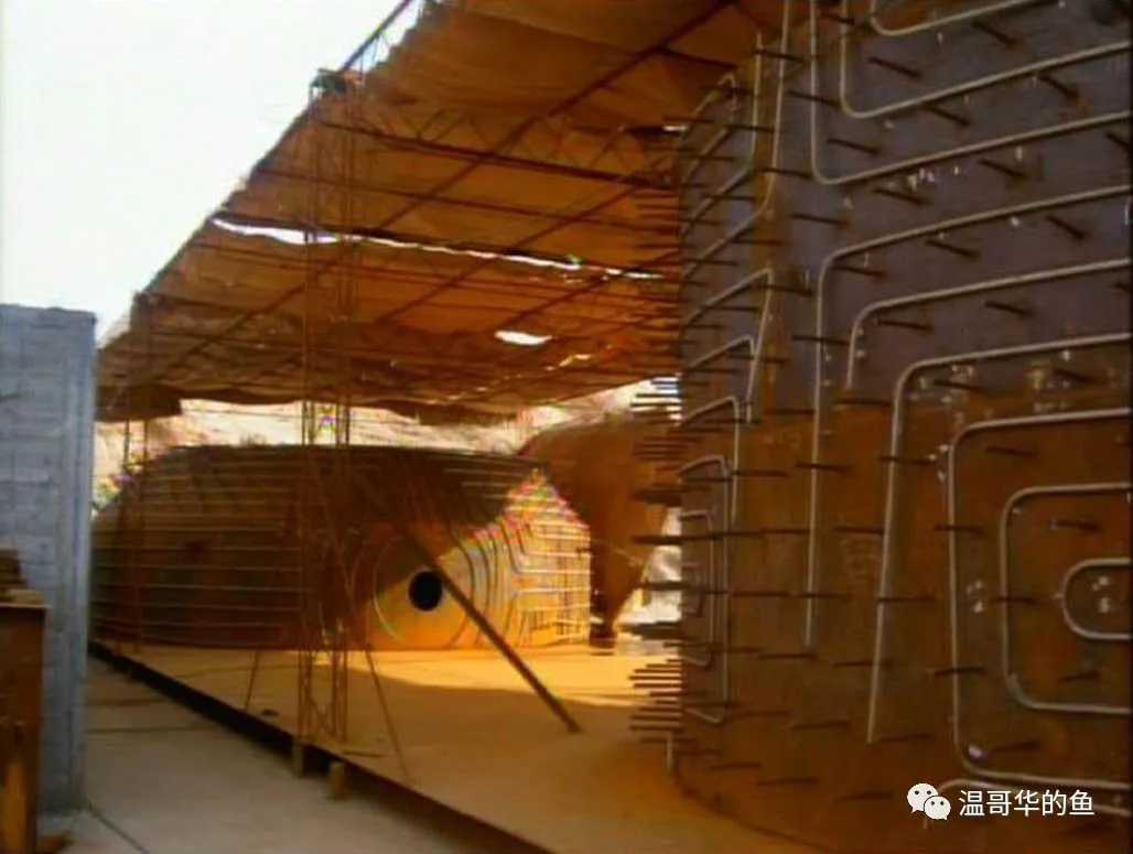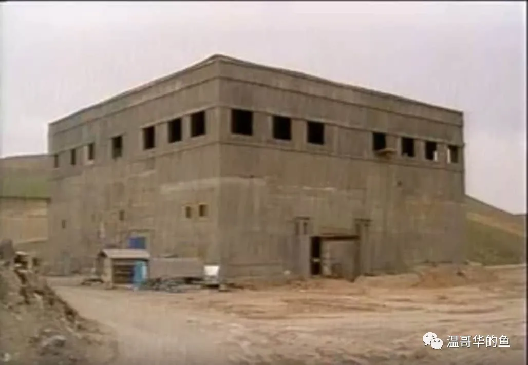> 地面拍攝的核設施建築外觀,橫截面為邊長40米的正方型,高度20米,被以方稱作“立方體”